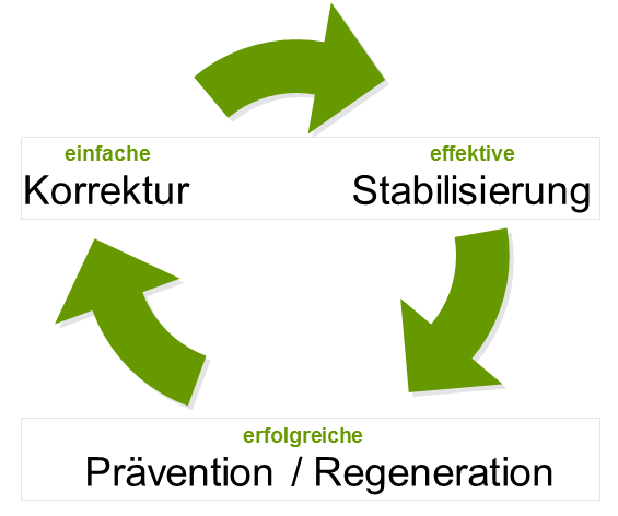 Massagen und Dehnungsübungen lockern verspannte Muskelpartien und „programmieren“ die Rückenmuskulatur neu, um die neue Position der Wirbelsäulengelenke zu stabilisieren. Zur weiteren Unterstützung können Schröpfgläser zum Einsatz kommen.